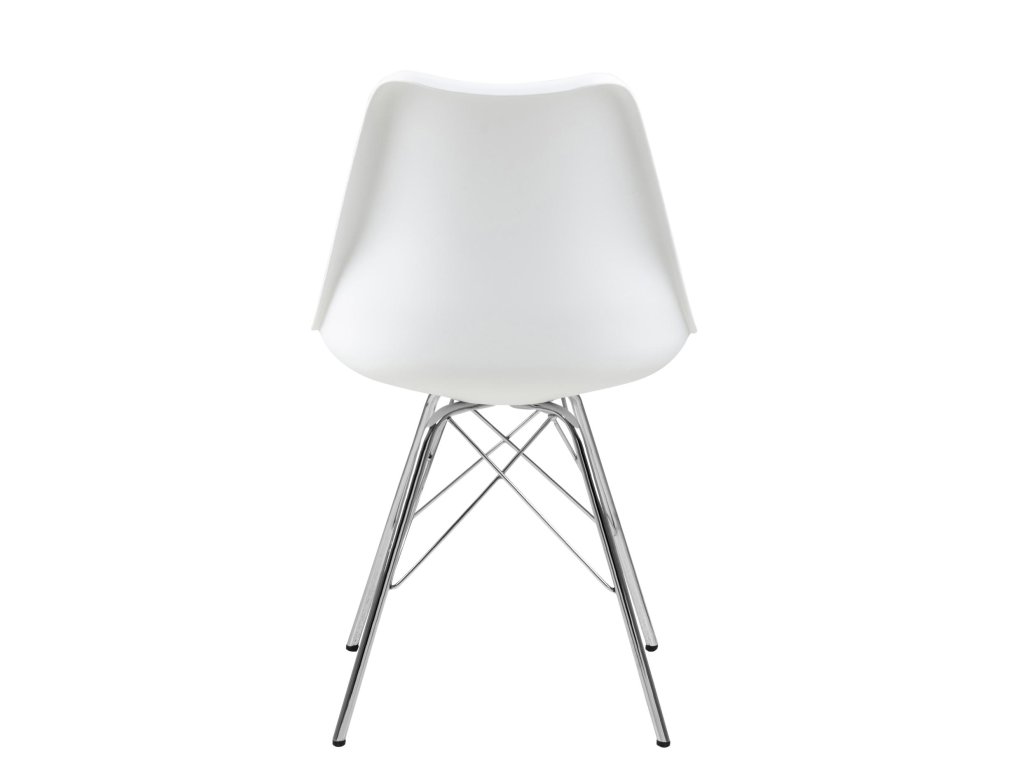 Bílá židle Eris působí čistě, svěže a moderně. Ekokůže je příjemná na dotek a snadno se udržuje. Chromové nohy dodávají jemný lesk a stabilitu. Skvělá volba do světlých a minimalistických interiérů.