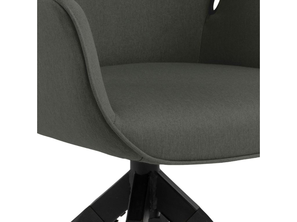 Tmavě šedé křeslo Aura je ideálním řešením pro každého, kdo hledá pohodlné a stylové sezení. Pevná černá základna z kaučukového dřeva dodává nábytku stabilitu. Ergonomický tvar a kvalitní zpracování podporují správné držení těla. Elegantní design podtrhuje jeho univerzálnost.
