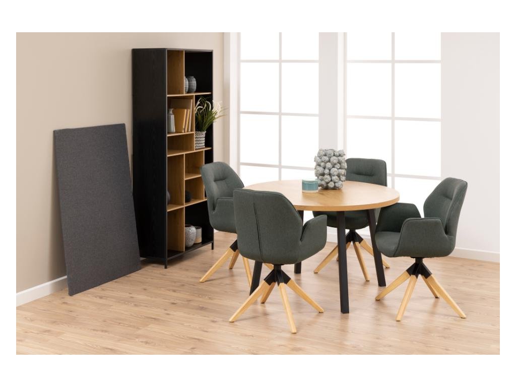 Jídelní křeslo Aura s područkami v látce Town tmavě šedá 33 přináší pohodlí a designovou vyváženost. Jeho sofistikovaná silueta s měkce čalouněným sedákem a opěradlem poskytuje vysoký komfort i při delším sezení. Podnož ze sytě mořeného, olejovaného dubového kaučukovníku přidává teplý kontrast a zároveň působí přírodně. Díky funkci automatického návratu se křeslo vždy otočí zpět do původní polohy – praktická volba do moderních jídelen či zasedacích prostor.