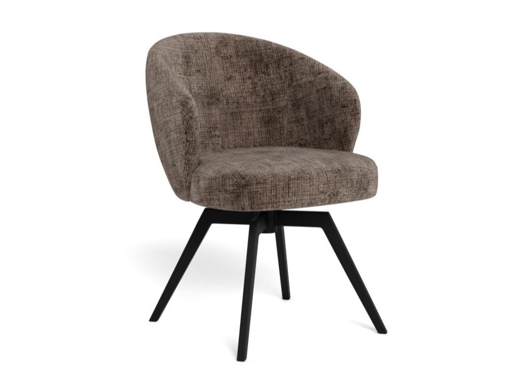 Jídelní křeslo Darlene přináší moderní vzhled a mimořádné pohodlí. Elegantní zaoblené sedátko je čalouněno měkkou hnědou látkou se zářivou texturou, která působí teplo a stylově. Taštičkové pružiny zvyšují komfort při sezení, zatímco funkce otáčení a automatického návratu usnadňují pohyb s minimální námahou. Stabilní základnu tvoří černá práškově lakovaná ocel. Vyrobeno z ohnivzdorných materiálů.