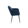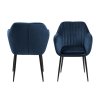 Křeslo Emilia v tmavě modré látce kombinuje komfort a moderní design. Pevná černá ocelová základna spolu s svislým prošíváním a loketními opěrkami zajišťuje pohodlí při delším sezení. Je vhodné do jídelních koutů i kanceláří. Elegantní čalounění dodává křeslu stylový vzhled.