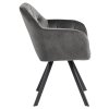 Elegantní křeslo Lola v tmavě šedé barvě s loketní opěrkou nabízí stylový komfort. Automatický návrat a prošívání zvýrazňují moderní design. Ocelová černá základna dodává konstrukci stabilitu. Skvělá volba do jídelních prostor.