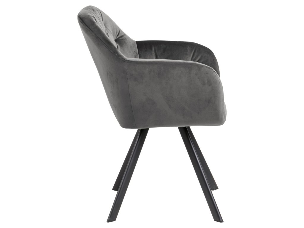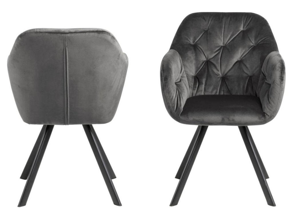 Elegantní křeslo Lola v tmavě šedé barvě s loketní opěrkou nabízí stylový komfort. Automatický návrat a prošívání zvýrazňují moderní design. Ocelová černá základna dodává konstrukci stabilitu. Skvělá volba do jídelních prostor.
