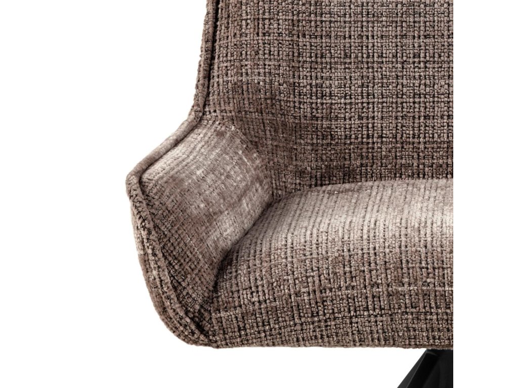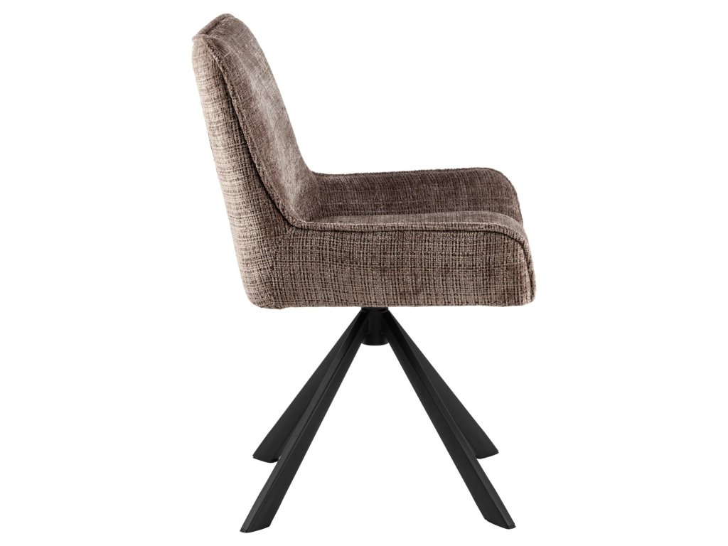 Jídelní židle Eddie kombinuje hnědé čalounění s černou kovovou podnoží pro nadčasový vzhled. Široké sedátko nabízí komfortní sezení při každém stolování. Kvalitní látka je příjemná na dotek a snadno udržovatelná. Vhodná do rustikálních i industriálních interiérů.