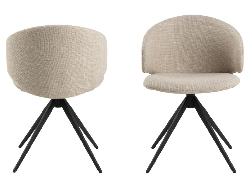 Jídelní židle Ella s otočnou základnou je ideálním spojením funkčnosti a designu. Béžové čalounění v kombinaci s černou ocelovou konstrukcí vytváří elegantní kontrast. Pohodlné sezení zaručuje kvalitní zpracování.