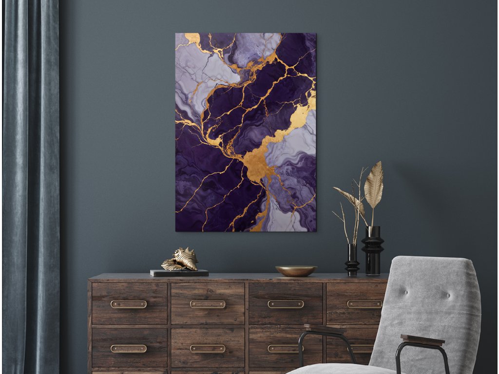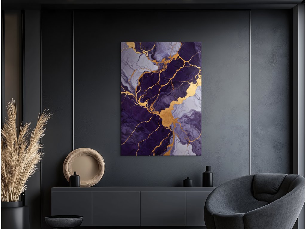 Mramorový obraz Fialový sen kombinuje lila fialovou barvu a mramorový efekt se zlatou barvou, čímž vytváří jedinečný luxusní akcent na stěně. UV tisk zvýrazňuje detaily a barvy, které věrně imitují mramorový povrch. Je to moderní a elegantní doplněk, který dodá prostoru světlost, dynamiku a stylový charakter. Ideální volba pro milovníky minimalismu a luxusu.