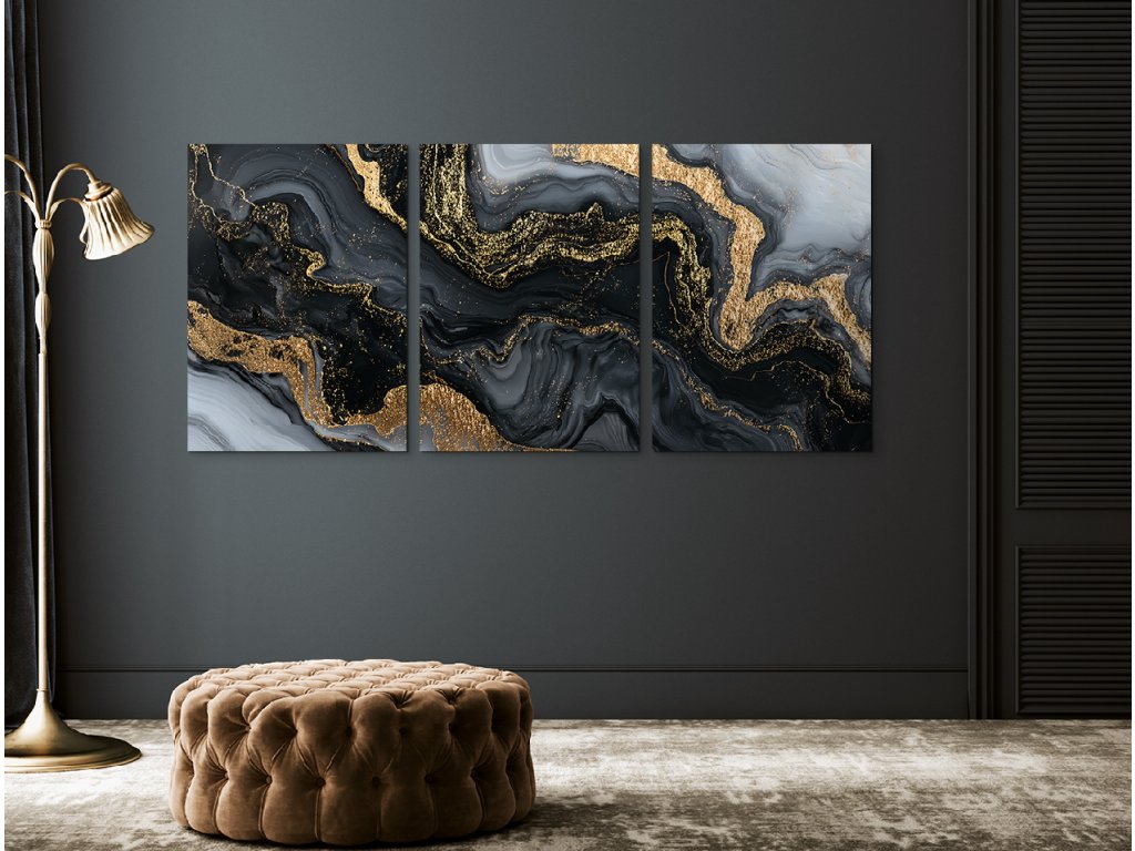 Třídílný mramorový obraz Noblesa kombinuje abstraktní linie a mramorový efekt, čímž vytváří jedinečný luxusní akcent na zdi. UV tisk zvýrazňuje detaily a barvy, které věrně imitují mramorový povrch. Je to moderní a elegantní doplněk, který dodá prostoru světlost, dynamiku a stylový charakter. Ideální volba pro milovníky minimalismu a luxusu.