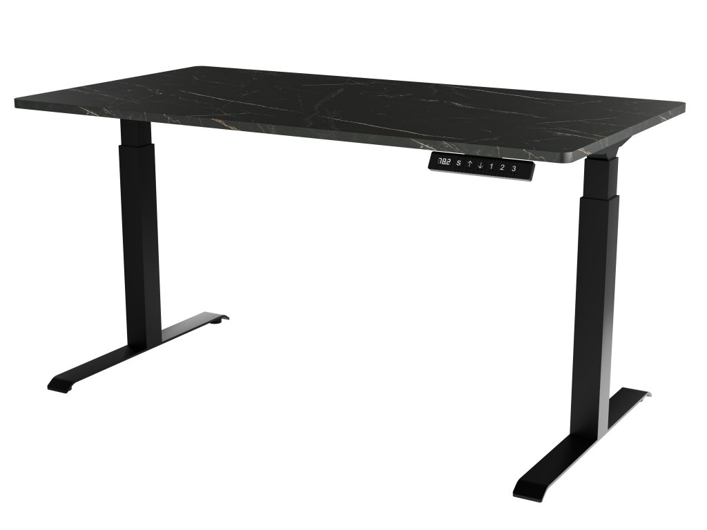 Industriální styl v dokonalé ergonomii – to je Moony Long v dekoru san sebastian (vzhled černého mramoru). S prostornou deskou 150 × 80 cm, tichým elektrickým zdvihem a antikolizním systémem přináší komfort i vizuální propojení s moderním interiérem.