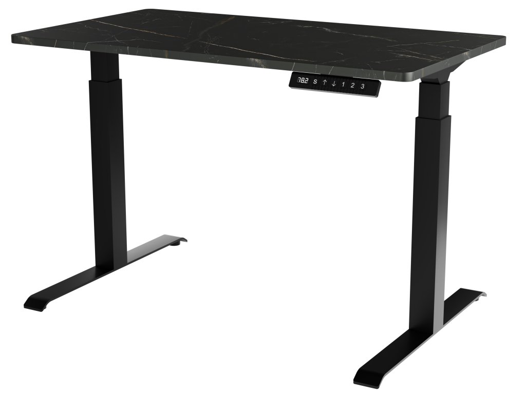 Pracovní deska v barvě san sebastian (vzhled černého mramoru), je vyrobena z kvalitní laminované dřevotřísky o tloušťce 22 mm, má zaoblené hrany. Kovová konstrukce s elektrickým pohonem zaručuje plynulý, tichý a spolehlivý chod, přičemž pevný rám zajišťuje vysokou stabilitu i při maximálním vysunutí.