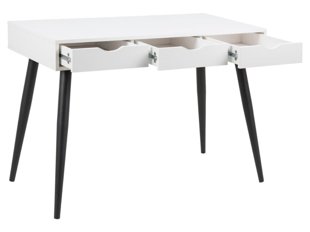 Tento model nabízí svěží vzhled s nádechem kontrastu – čistá bílá pracovní deska a zásuvky vytvářejí dojem světlosti a pořádku, zatímco černé kovové nohy dodávají stolku stabilitu a stylový kontrapunkt. Díky této kombinaci se hodí do skandinávských, minimalistických i kreativních interiérů. Je skvělý pro všechny, kteří hledají rovnováhu mezi jemností a výrazem.