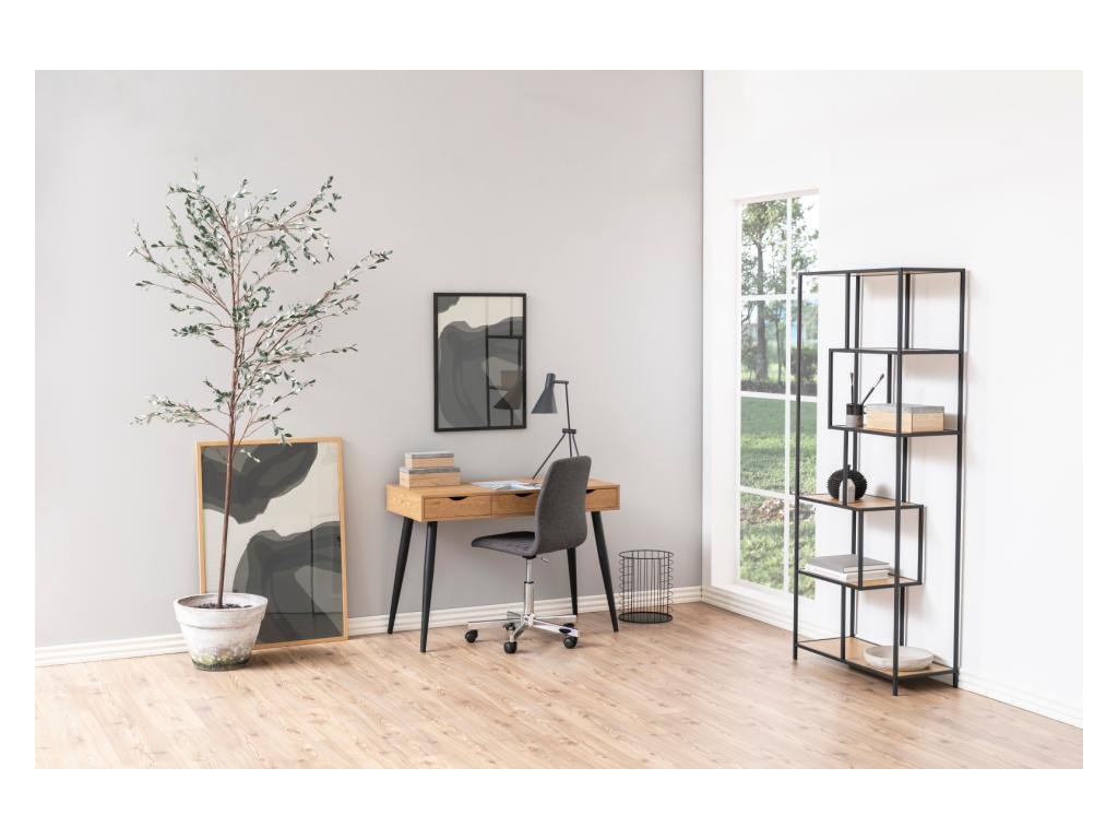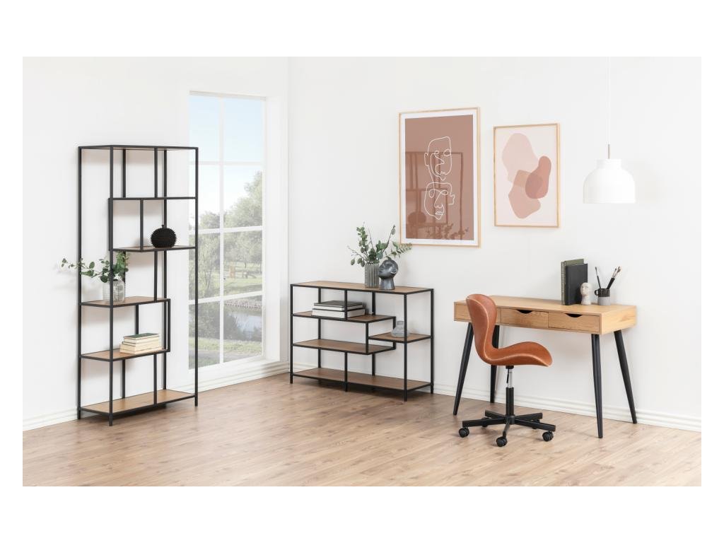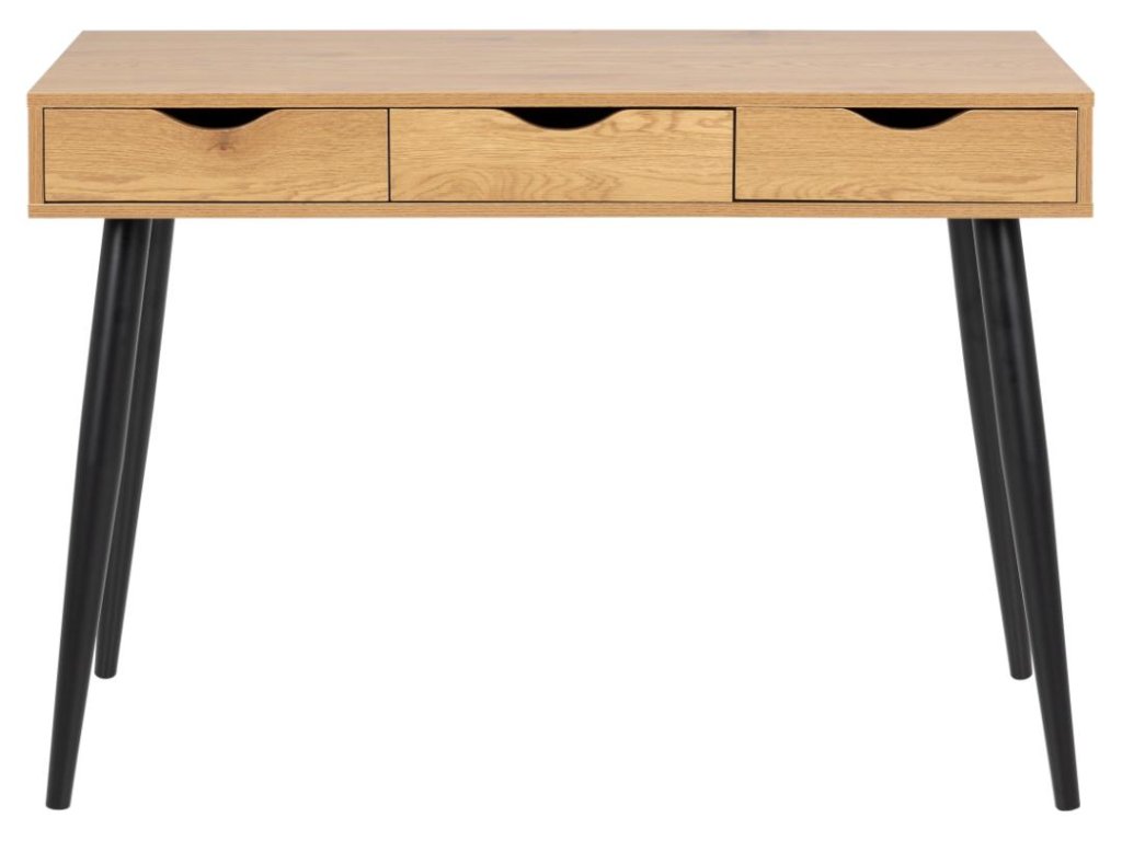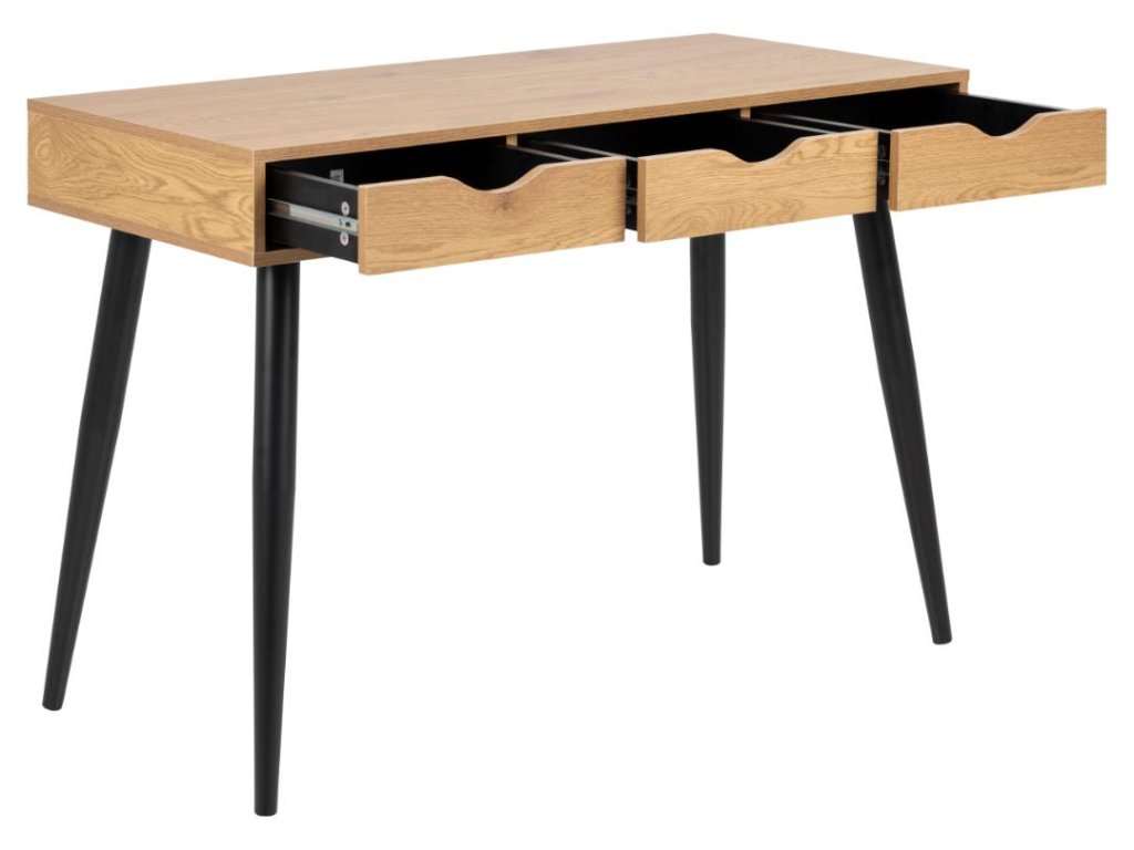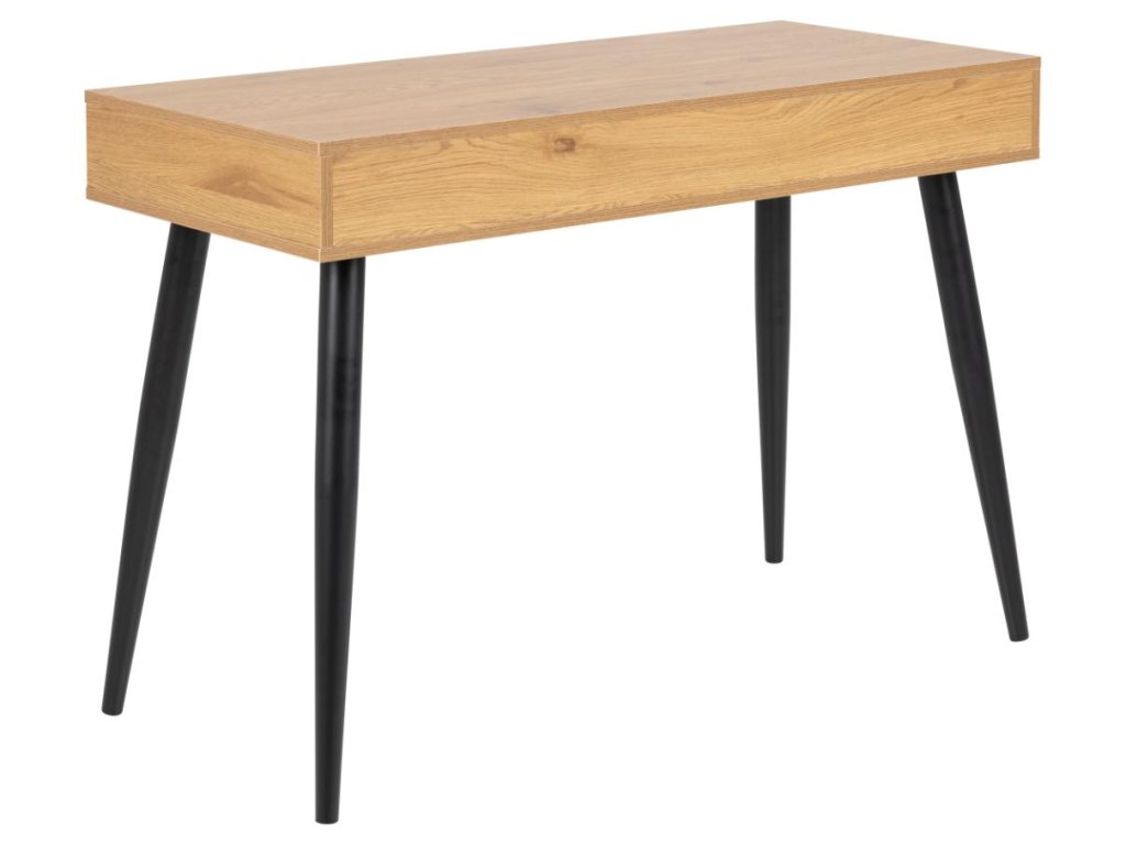 Obdélníkový stolek Neptun s dekorem divokého dubu a černou ocelovou základnou v industriálním stylu nabízí tři praktické zásuvky a pevnou pracovní plochu. Ideální do domácích kanceláří nebo studentských pokojů.