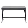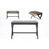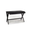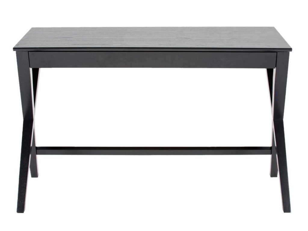 Kancelářský stůl Writex je navržen pro soustředěnou práci i tvůrčí projekty. Robustní černá konstrukce z lakované dubové a kaučukovníkové dýhy v kombinaci s praktickým otvorem pro kabely zajišťuje čistý a funkční pracovní prostor. Zásuvka s kovovými kolejničkami poskytuje dostatek úložného prostoru pro potřebné věci, které nechcete mít přímo na desce. Nohy ve tvaru X dodávají stabilitu i designový výraz.