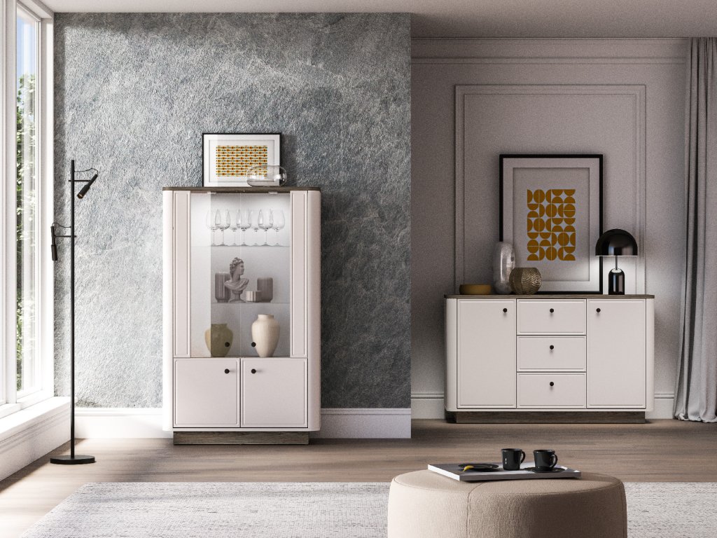 Kolekce Vilavio je esencí stylu, elegance a propracovaného detailu. Jemně zaoblené přechody mezi korpusem a čely vytvářejí harmonický tvar, který okamžitě upoutá pozornost a dodá každému interiéru osobitý charakter.