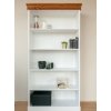 Bílý dřevěný nábytek je charakteristický pro provensálský styl a vintage. Je také běžný ve velmi módních skandinávských úpravách. Díky bílé barvě, frézovaným věncům a lehké struktuře je knihovna Toskana univerzálním kusem nábytku, který se hodí do různých místností a stylů.