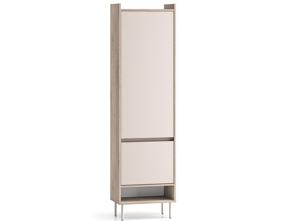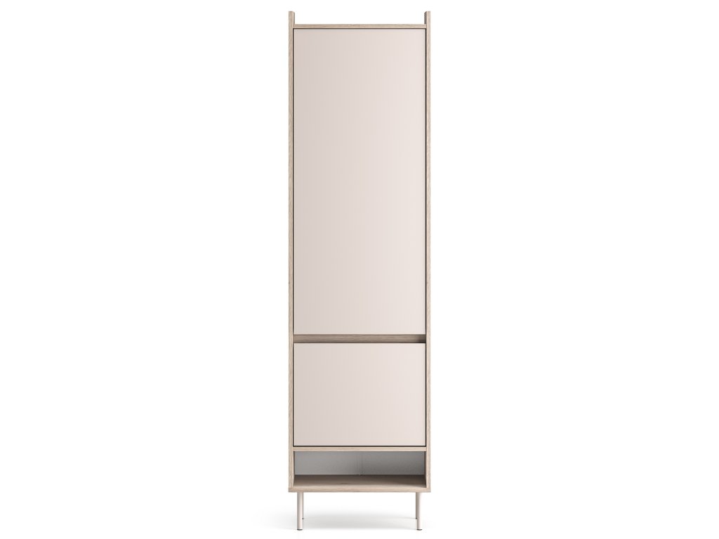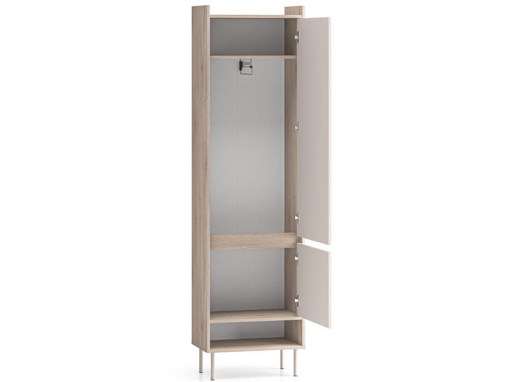 Úzká vysoká skříň s 2 dvířky, výsuvným věšákem a 2 policemi. Elegantní design kolekce Voco šetří prostor a zároveň nabízí praktické úložné řešení.
