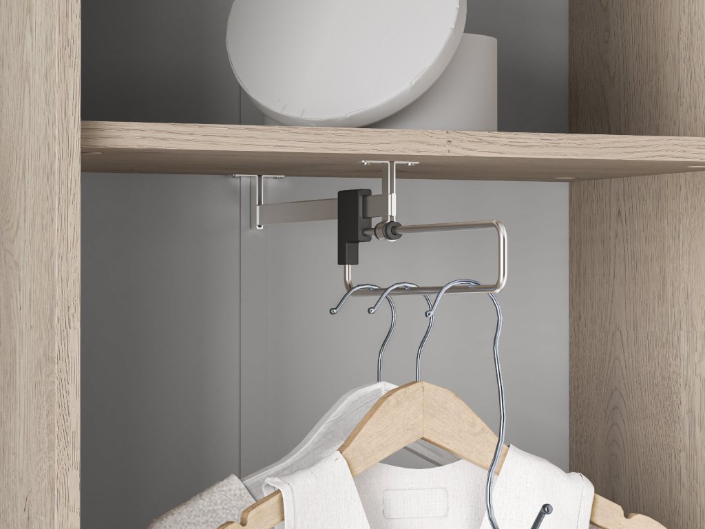 O pohodlí při používání se starají tiché mechanismy dovírání dvířek a plně výsuvné zásuvky, které zajišťují snadný přístup k obsahu. Nechybí ani praktické detaily jako výsuvný věšák, který usnadňuje manipulaci s oblečením.