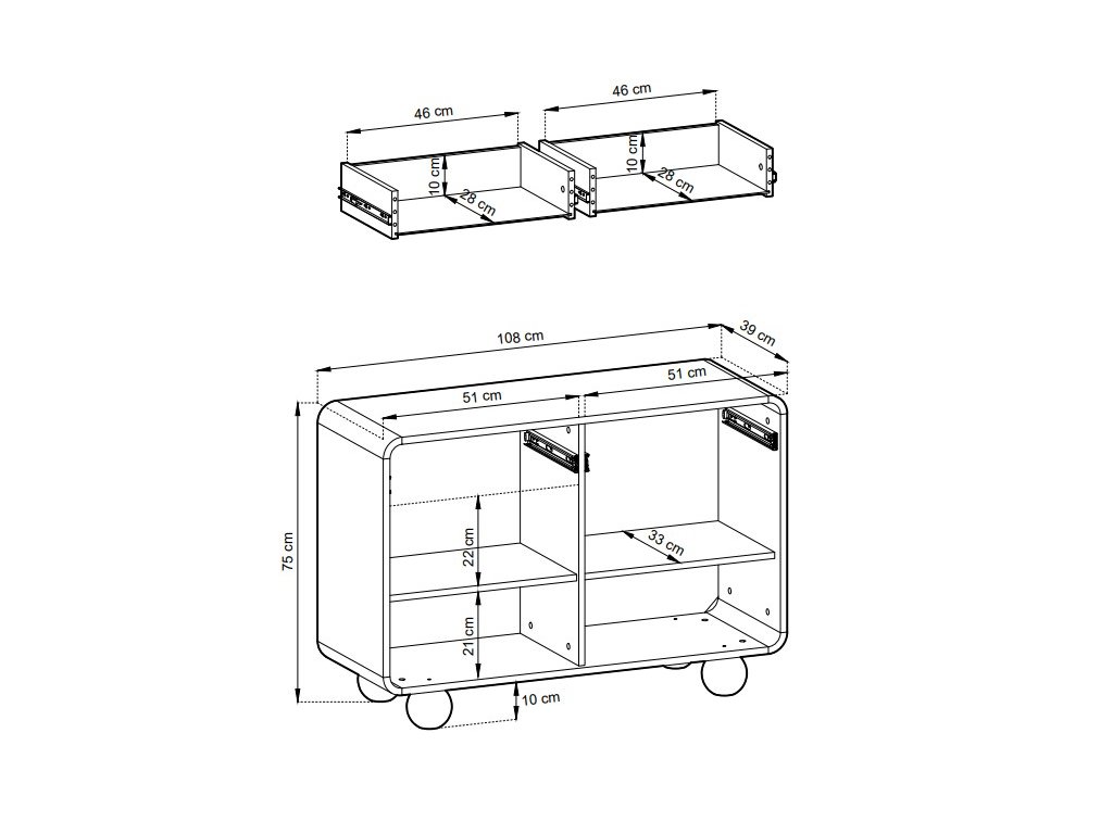 Komoda Albion spojuje elegantní design s praktickým úložným řešením. Na rozměrech 108 × 39 × 75 cm nabízí dvě zásuvky na drobnosti či dokumenty a dvoudveřovou skříňku s odkládacím prostorem pro větší předměty nebo textilie. Díky kompaktním rozměrům se hodí nejen do obývacího pokoje, ale také do ložnice či předsíně.