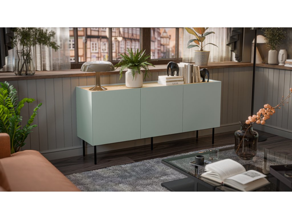 Tato komoda Fellini 150 – zelená kombinuje elegantní design, praktičnost a moderní zpracování. Díky své neutrální barvě a stylovému detailu v dekoru dub olejovaný se dokonale hodí do moderních i přírodně laděných interiérů.