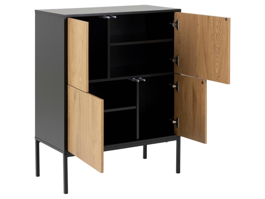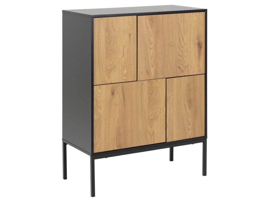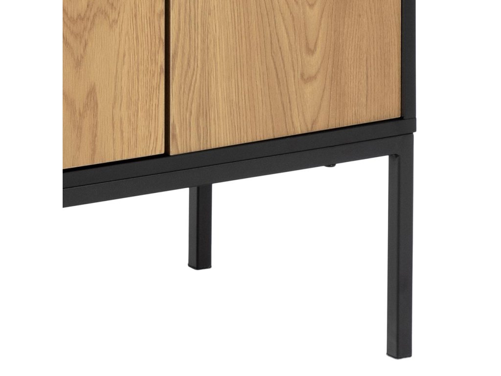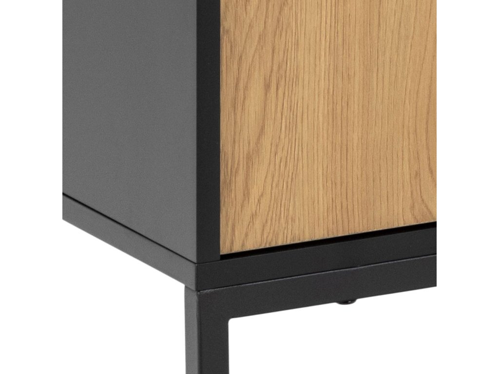 Komoda Seaford kombinuje matný divoký dub s černým PU lakovaným rámem a pevnou ocelovou podnoží pro výrazný industriální vzhled. Nabízí 4 dvířka s funkcí push-to-open a 2 prostorné police, které poskytnou dostatek úložného prostoru. Stylový kousek, který oživí každou moderní místnost.