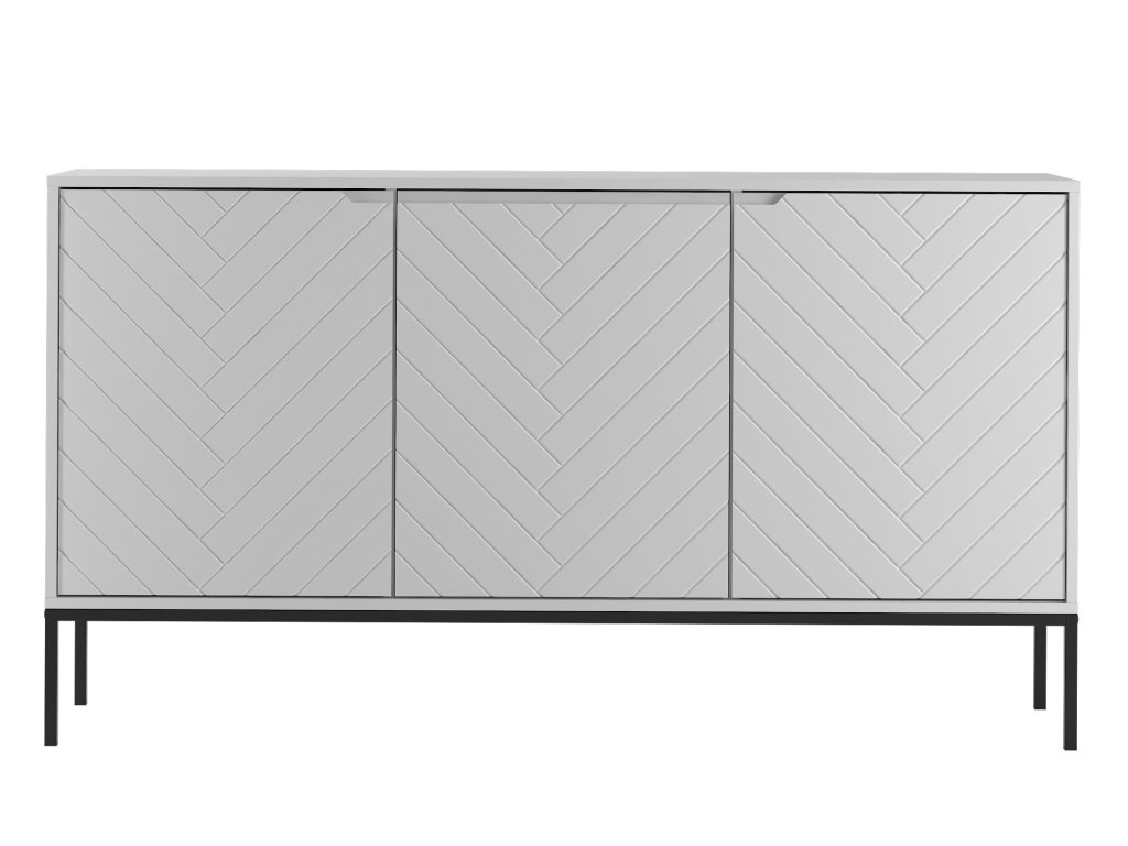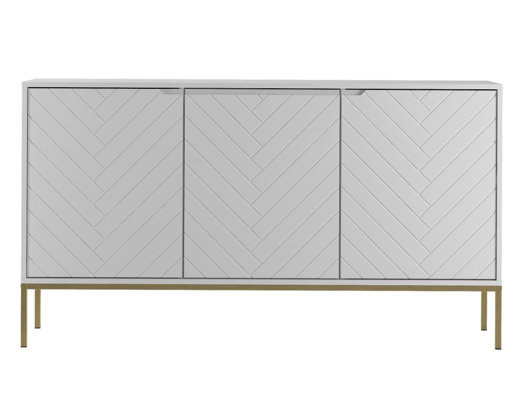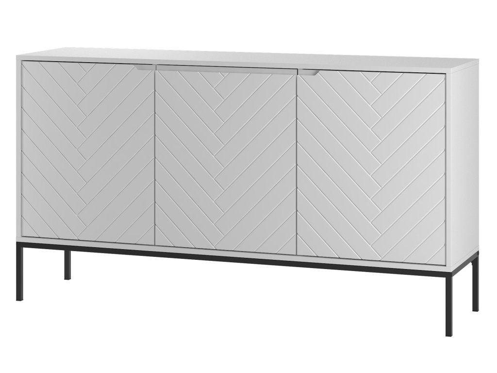 - Matný bílý povrch spolu s frézovaným stromečkovým vzorem na čelech přidávají komodě stylový a moderní vzhled.