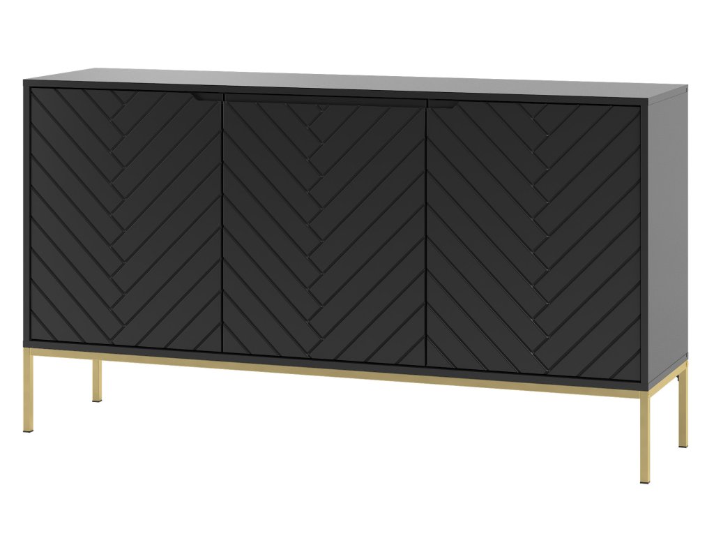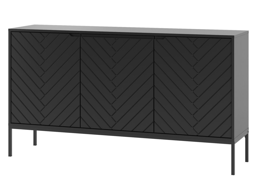 Komoda Aspen 03 v matné černé barvě přináší interiéru sofistikovaný a moderní vzhled. Frézovaná čela s unikátním stromečkovým vzorem a minimalistický design bez úchytek zdůrazňují čisté linie nábytku. S třemi otevíracími dvířky nabízí dostatek plnohodnotného úložného prostoru a zaujme svou elegancí i praktičností.