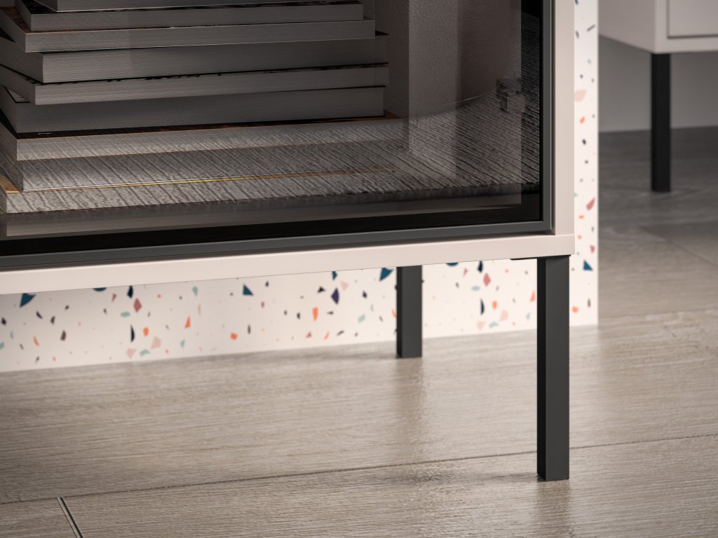 - Vysoké kovové nohy v černé barvě – snadné čištění pod nábytkem