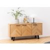 Dodejte svému domovu šmrnc noblesy s komodou Brighton, která spojuje moderní design s tradičními řemeslnými detaily. Vzor rybé kosti na přední části dvířek okamžitě přitáhne pohledy, zatímco olejovaná dubová dýha dodává nábytku přirozené teplo a strukturu.