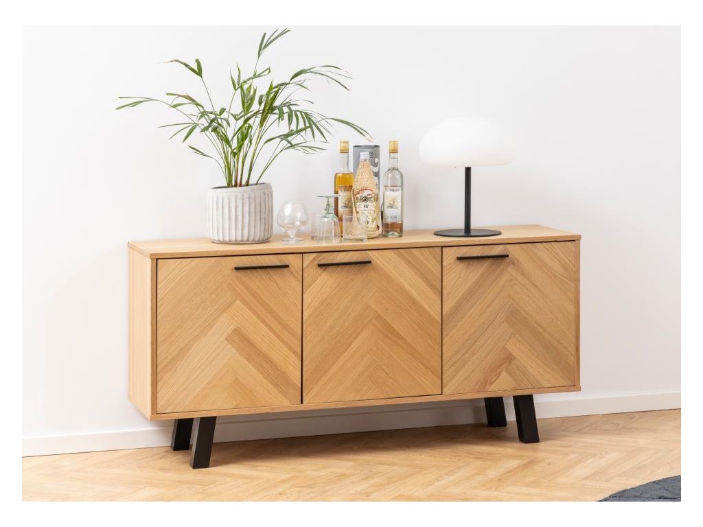 Dodejte svému domovu šmrnc noblesy s komodou Brighton, která spojuje moderní design s tradičními řemeslnými detaily. Vzor rybé kosti na přední části dvířek okamžitě přitáhne pohledy, zatímco olejovaná dubová dýha dodává nábytku přirozené teplo a strukturu.