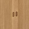Z praktické stránky zaujmou posuvná „roletová“ dvířka – šetří místo před nábytkem a dodávají čelům čistý, nepřerušovaný vzhled. Uvnitř naleznete polohovatelné police, prostorné zásuvky či šatní tyč, takže úložný prostor si přizpůsobíte přesně podle potřeby. Kulaté dubové nohy s plstěnými podložkami zajišťují stabilitu a šetří podlahu, zatímco celodubové akcenty ucelí vzhled v každé místnosti – od obývacího pokoje, přes jídelnu až po ložnici.