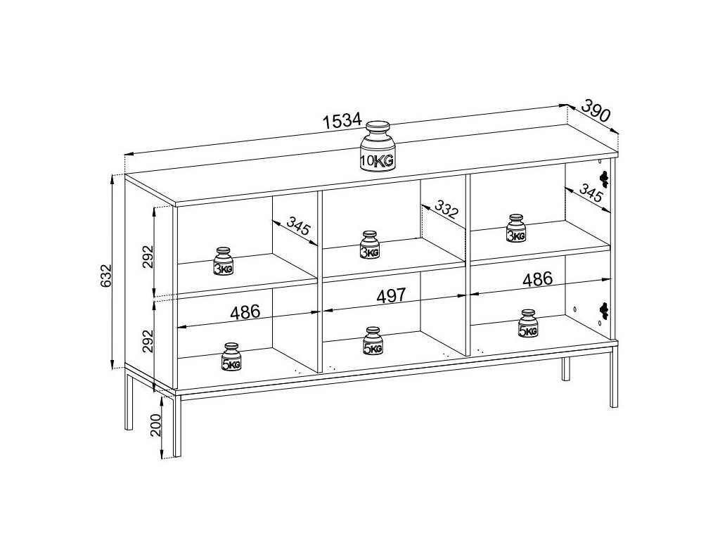 Bohatý úložný prostor můžete využít k uložení oblečení, dokumentů, cenných věcí a mnoho dalšího. Komoda disponuje 3 skříňkami rozdělenými policí. Kolekcí Sento si vyskládáte stylový obývací pokoj, některé kousky jsou vhodné i do předsíně.