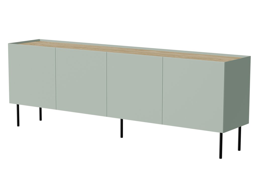 Elegantní komoda Fellini 200 v olivově zelené barvě dodá tvému interiéru styl, svěžest a harmonii. Zapuštěná vrchní deska, šikmé hrany a matné lakované povrchy podtrhují moderní design. Kovové nožičky a bezúchytová dvířka doplňují minimalistický charakter kolekce Fellini.