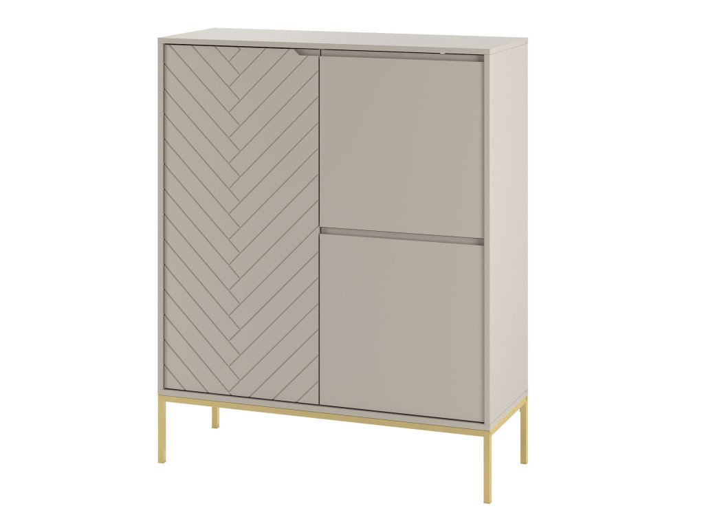 Vysoká komoda Aspen 07 z kolekce Aspen v matné béžové barvě přináší do vašeho interiéru teplý a moderní vzhled. Elegantní frézovaná čela s jemným stromečkovým vzorem a minimalistický čtvercový tvar dodávají komodě stylovou jednoduchost. Tři dvířka poskytují praktický a pohodlný úložný prostor pro každodenní potřeby.