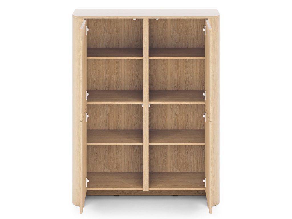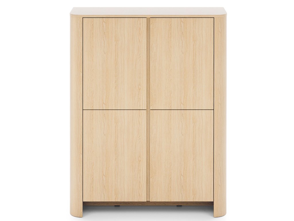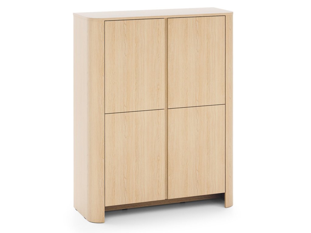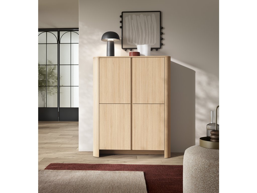 Vysoká komoda Bari – dub vincenza kombinuje čtveřici dvířek a vnitřní prostor rozdělený na 8 částí. Moderní vzhled se soklem a jemně zaoblenými hranami se hodí do každého interiéru.
