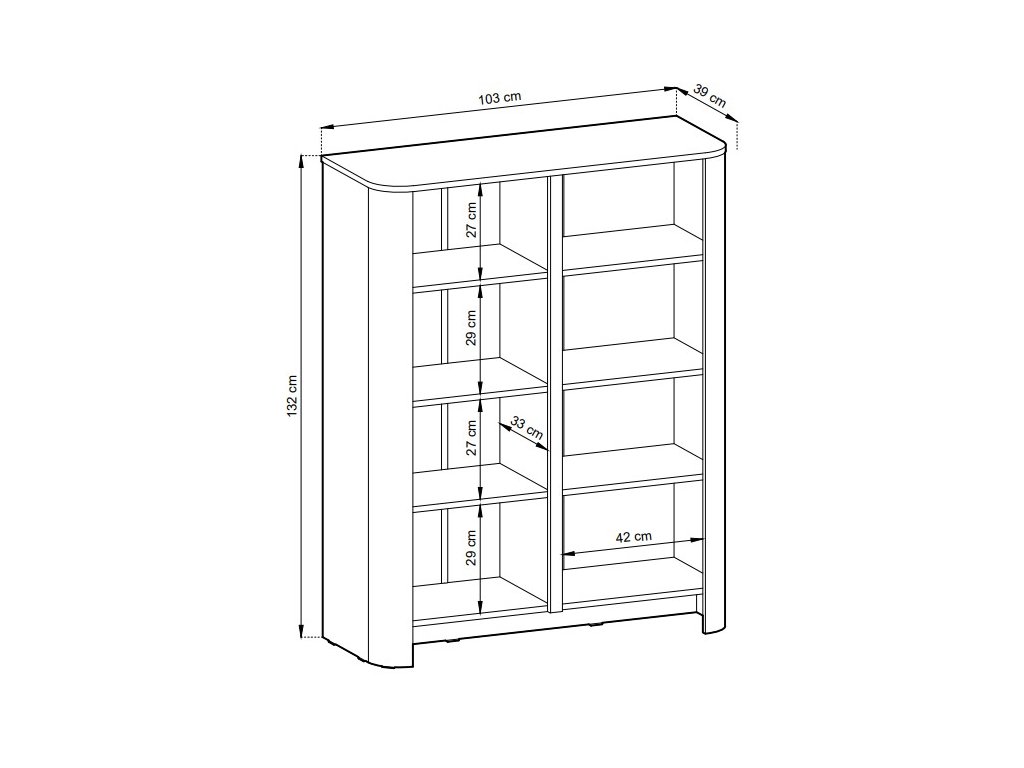 Variant vysoké komody Bari v dekoru dub vincenza vnáší do prostoru hřejivost a přirozený charakter. Rozměry 103×39×132 cm poskytují ideální kompromis mezi úložným prostorem a kompaktními rozměry. Čtyři dvířka ukrývají prakticky členěný interiér s 8 odkládacími částmi, které se postarají o pořádek v domácnosti.