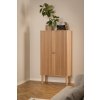 Zaoblené rohy, jemná dubová dýha a výrazné lamelové čelo tvoří okouzlující podpis kolekce Langley. Úzká výška 145 cm šetří půdorys, ale díky dvěm nastavitelným policím poskytne překvapivě spoustu místa na knihy, porcelán i sezónní dekorace. Posuvná roletová dvířka skrývají obsah, aniž by při otevírání zasahovala do prostoru – ideální pro užší chodby či obývací pokoj.