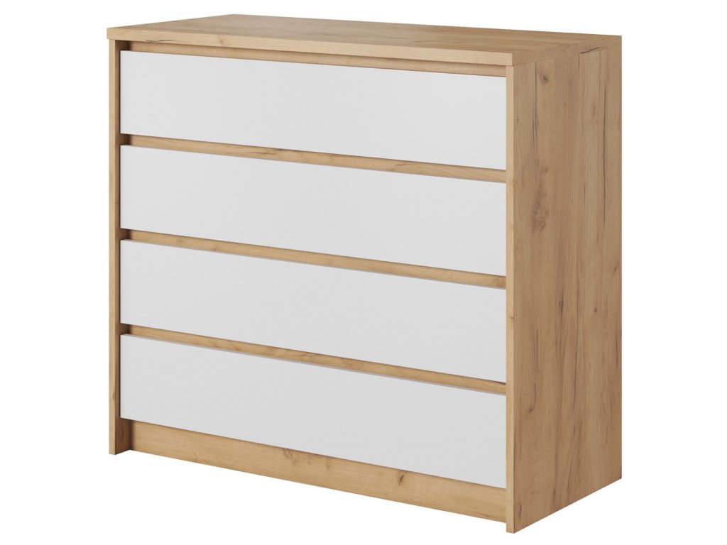 Zásuvková komoda Xelo – bílá / dub craft zlatý o rozměrech 92,6 × 90 × 40,5 cm nabízí 4 prostorné zásuvky s push-to-open systémem. Elegantní kombinace bílé a dubu craft zlatého ji činí moderním a praktickým doplňkem interiéru.