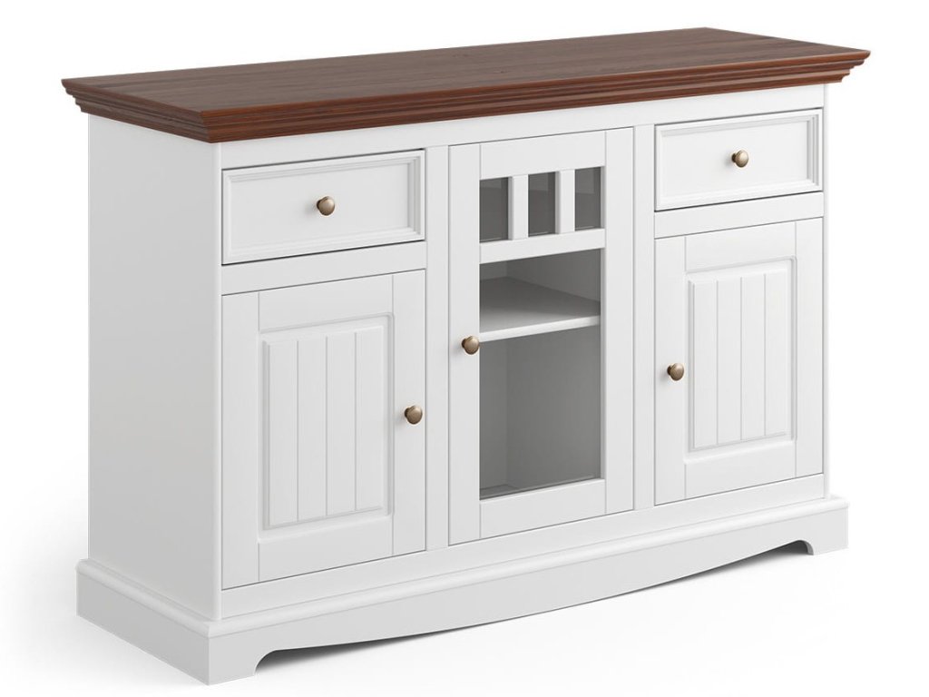 Bílá komoda s prosklenými dvířky zapadne do každého interiéru a oživí všechny kouty v domě. Je vyrobena z borovicového dřeva v provensálském designu. Komoda je oblíbená díky elegantnímu designu.