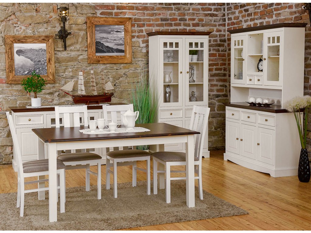 Borovicová komoda Bellu do obývacího pokoje - bílá/ořech