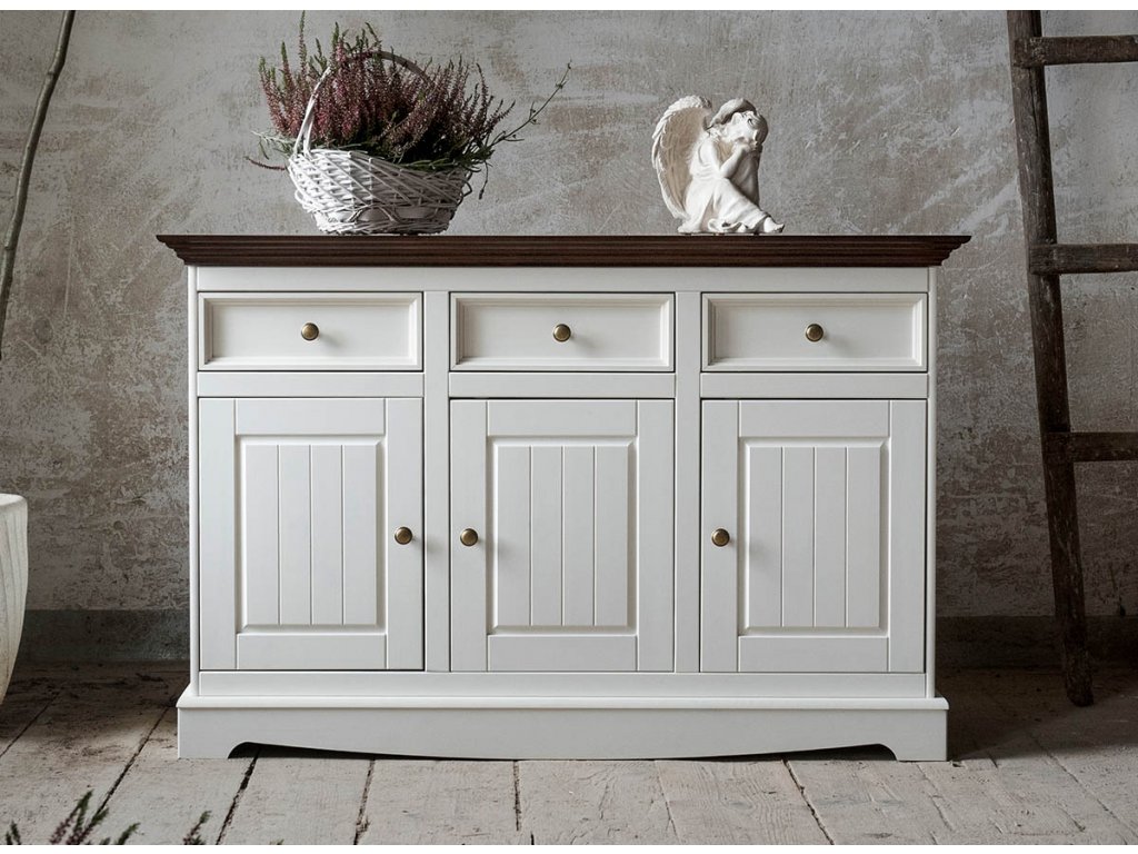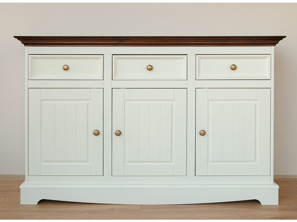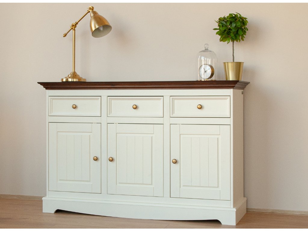 Co řeknete na mimořádně praktický a krásný kus nábytku zároveň? 3dveřová komoda dokáže zařídit výzdobu mnoha interiérů - od předsíně, přes obývací pokoj, jídelnu až po pracovnu. Její univerzální barva a klasická jednoduchost ozdobí interiér v provensálském stylu.