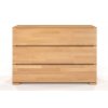 Dřevěná komoda z buku se 3 prostornými zásuvkami. Klasické úchyty vystřídaly výřezy na okrajích, které splňují praktickou i designovou funkci. Komoda stojí na širokých nohách, které zajišťují extra stabilitu. Dá se snadno kombinovat s ostatním nábytkem kolekce Sparta.