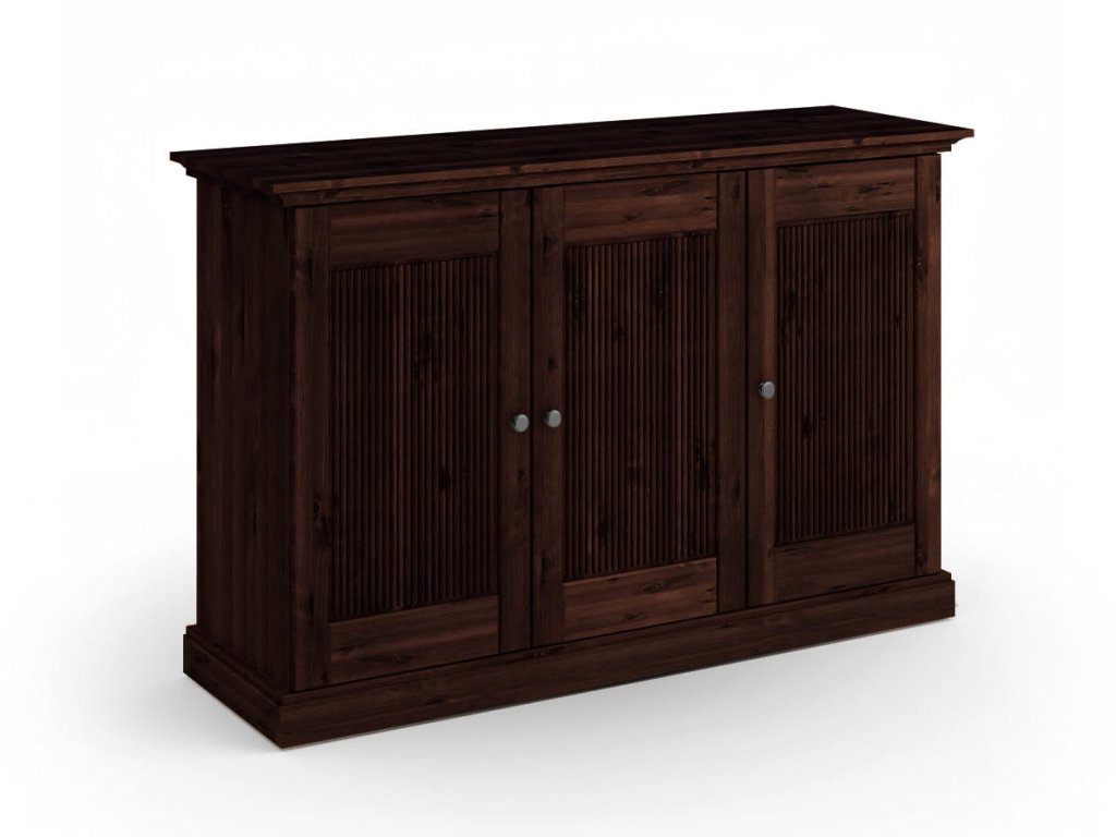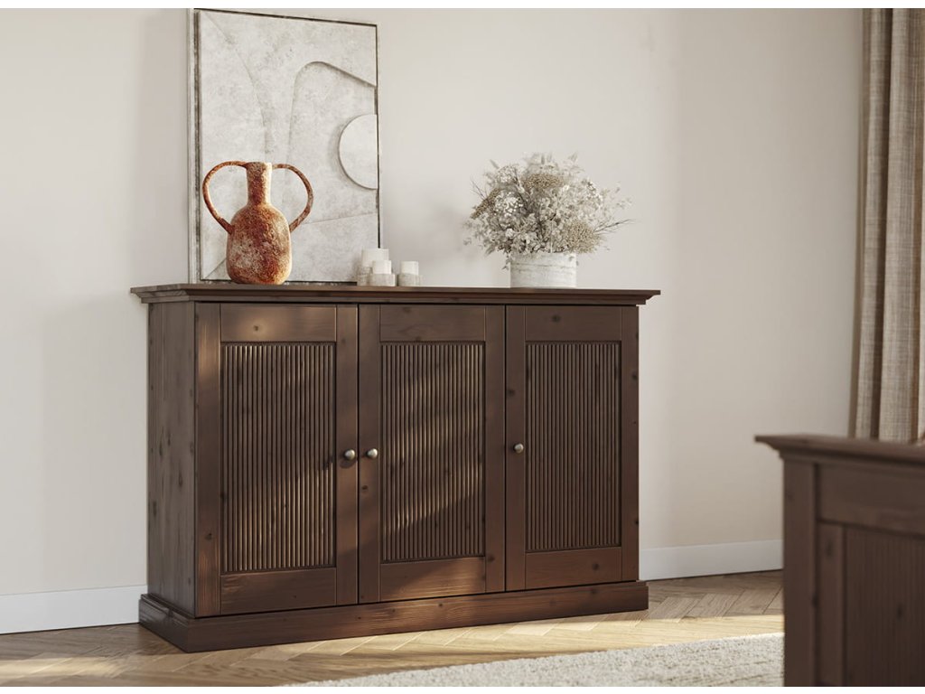 Široká komoda Rosella je ideálním řešením pro ty, kteří hledají kombinaci elegantního designu a maximální praktičnosti. Tento model s trojicí dvířek a zásuvek nabízí dostatek úložného prostoru pro každodenní potřeby. Vyrobená z masivního borového dřeva, zaujme svým teplým tabákovým tónem a detaily, které odkazují na romantický provensálský styl. Vynikne v ložnici i obývacím pokoji jako výrazný, ale stále útulný prvek.