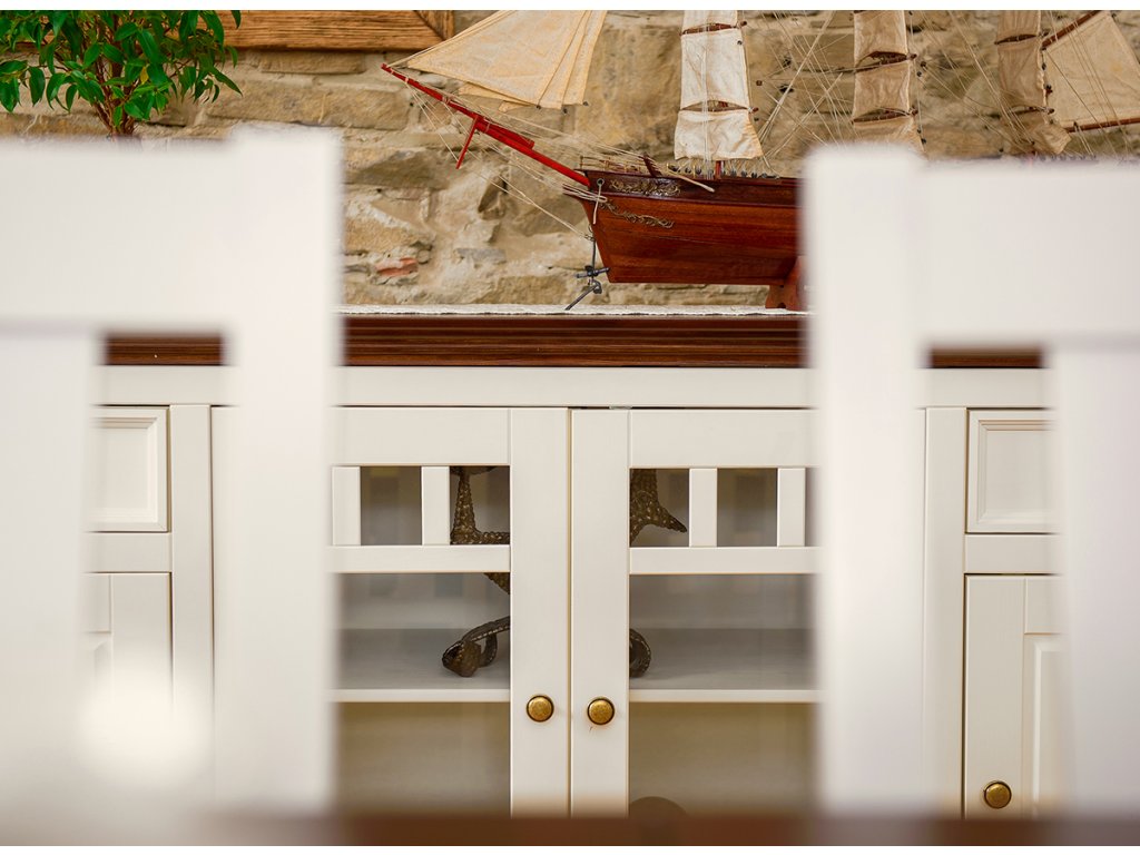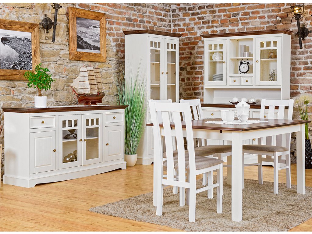 Prosklená komoda z masivu borovice, která okouzlí každého. Disponuje velkým úložným prostorem, který umožňuje vystavovat předměty, ale také schovat to, co nemá být oku viditelné.