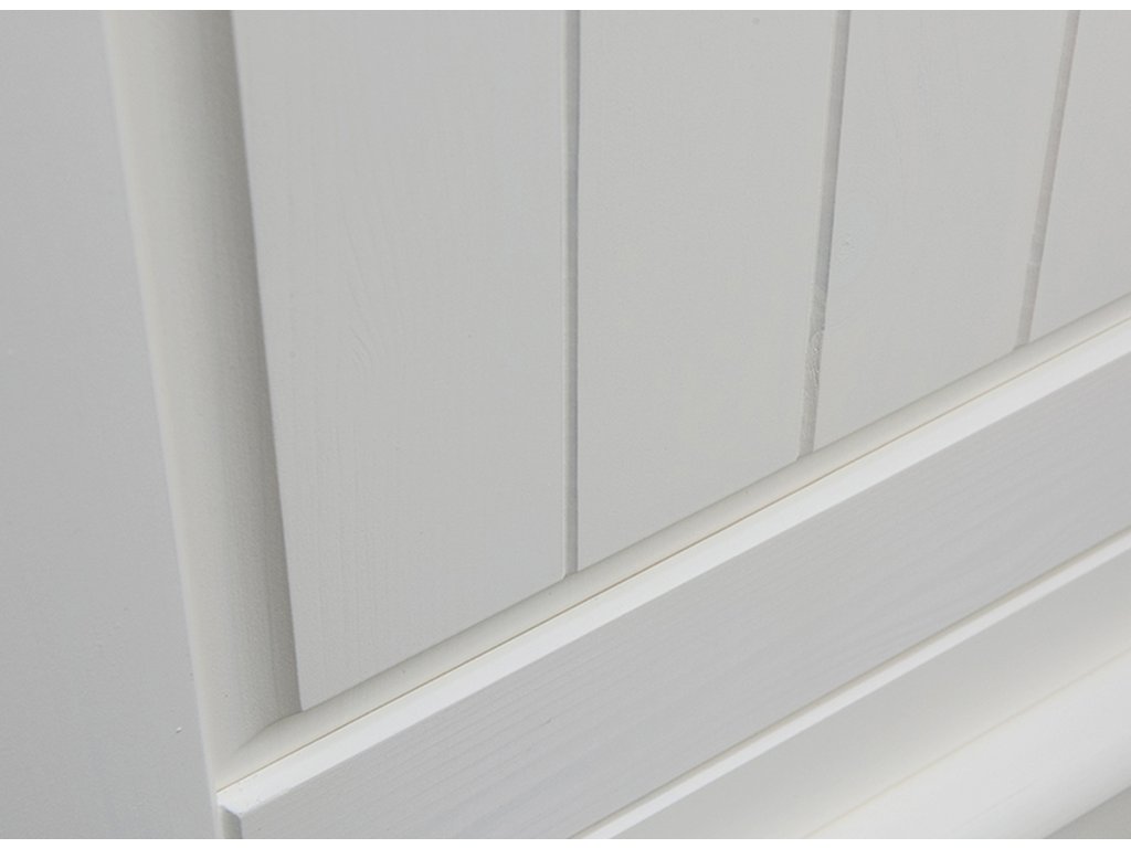 Bílá komoda je vybavena třemi zásuvkami na lištách. Dvě z nich jsou menší, přičemž ta v centrální části je velká a široká. Do zásuvek můžete dát všechny potřebné věci, od dokumentů až po karty. Zásuvky jsou vybaveny systémem tichého zavírání. Boční strany zásuvek nejsou vybělené.