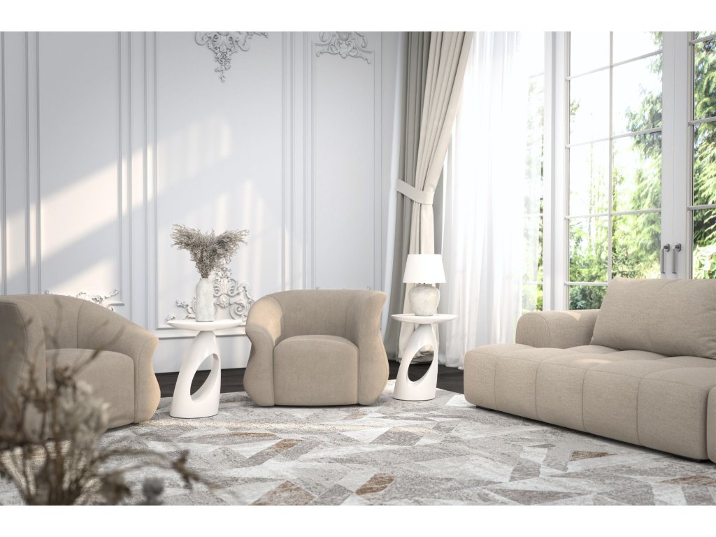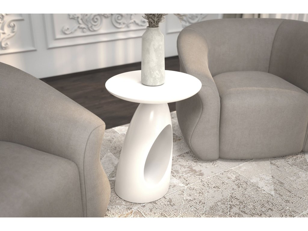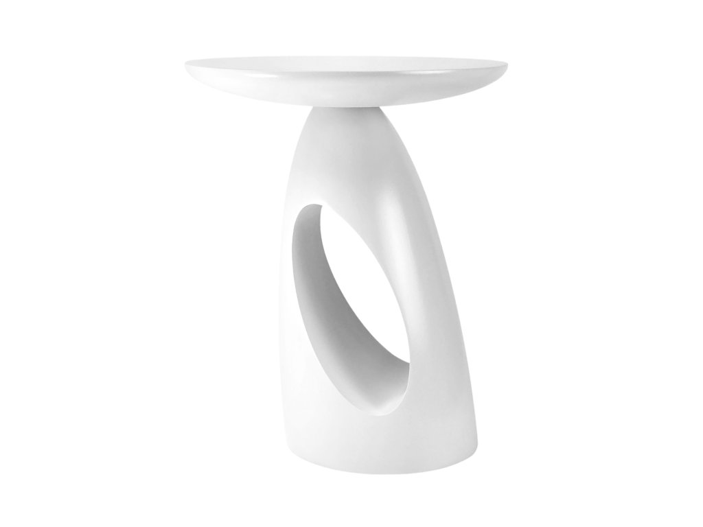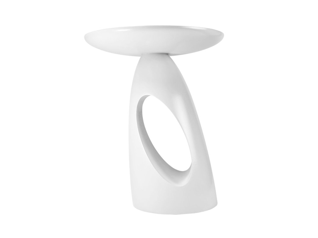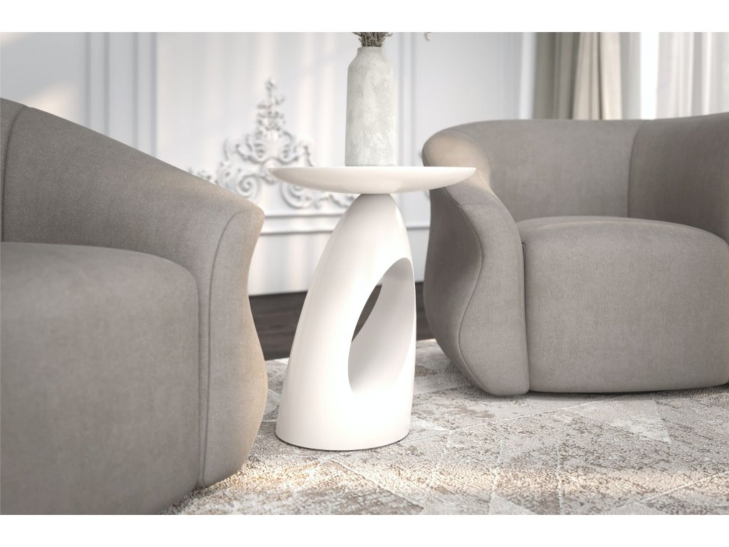Bílý stolek Island je ztělesněním čistoty, vzdušnosti a vizuální lehkosti. Skvěle se hodí do světlých a minimalistických interiérů, kde přirozeně splyne s prostorem. Sochařský tvar s oválným otvorem dodává stolku jedinečný výraz bez zbytečných ozdob. Díky výšce 40 cm je ideální jako noční stolek nebo doplněk k pohovce.