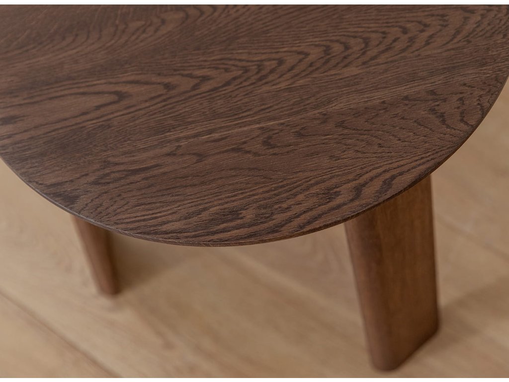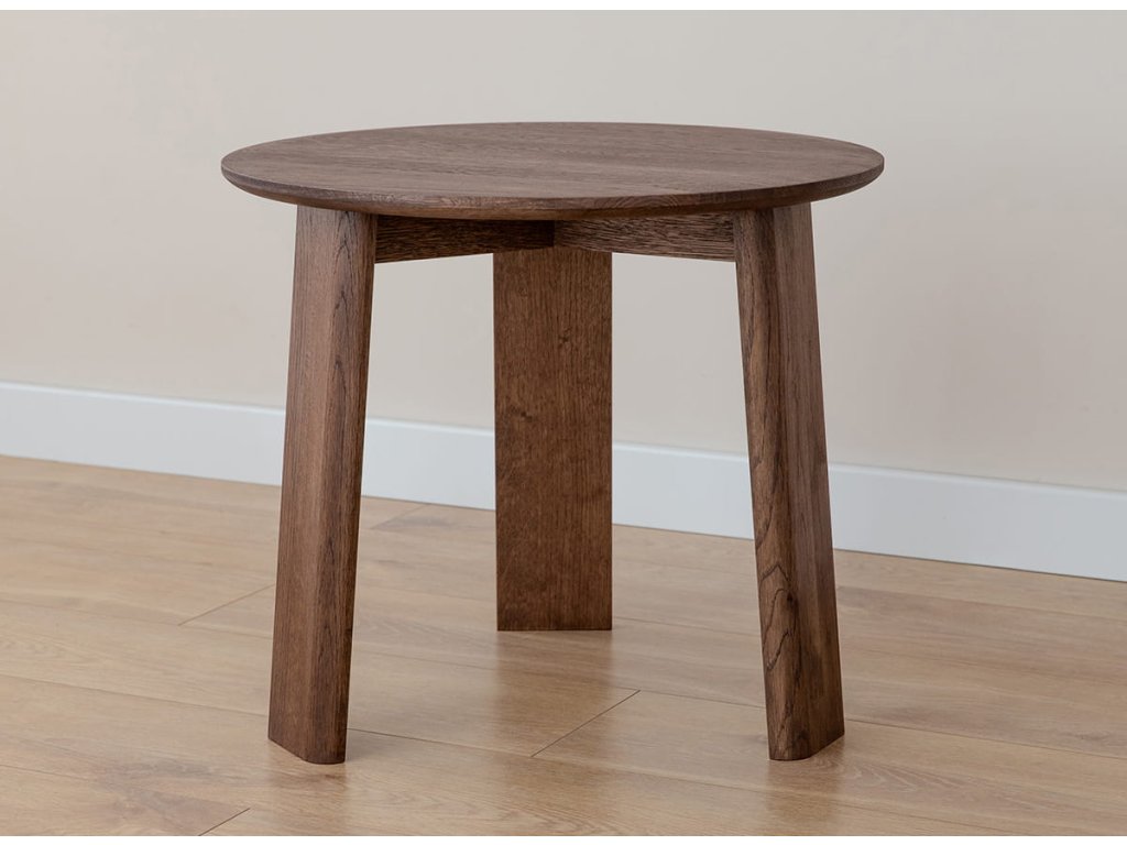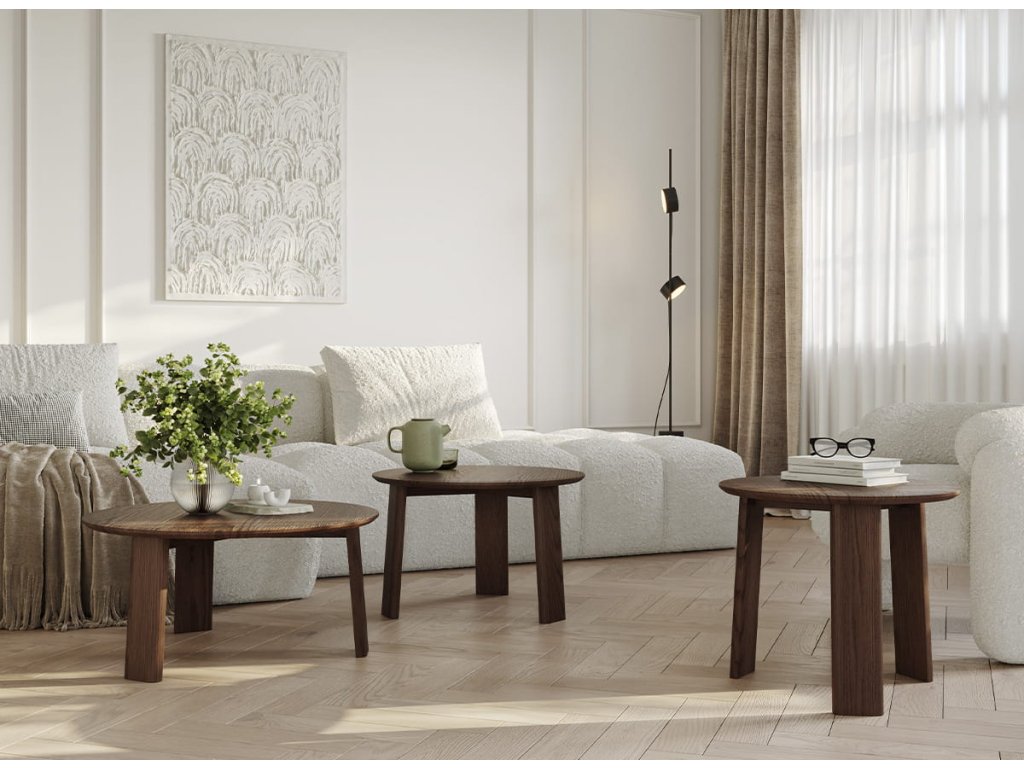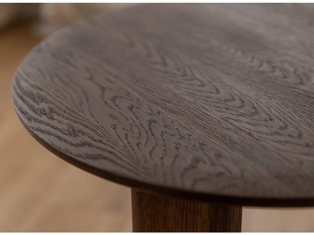 Kompaktní kulatý konferenční stolek Monto o průměru 51 cm v tmavém tabákovém provedení je skvělým řešením pro menší prostory, kde chcete zachovat styl i funkčnost. Tmavé dřevo působí noblesně a útulně zároveň. Hodí se jako noční stolek, doplněk do pracovny nebo jako designový akcent v rohu místnosti. Je to malý, ale výrazný kousek s velkým efektem.