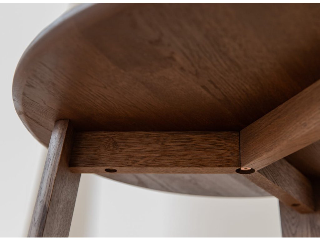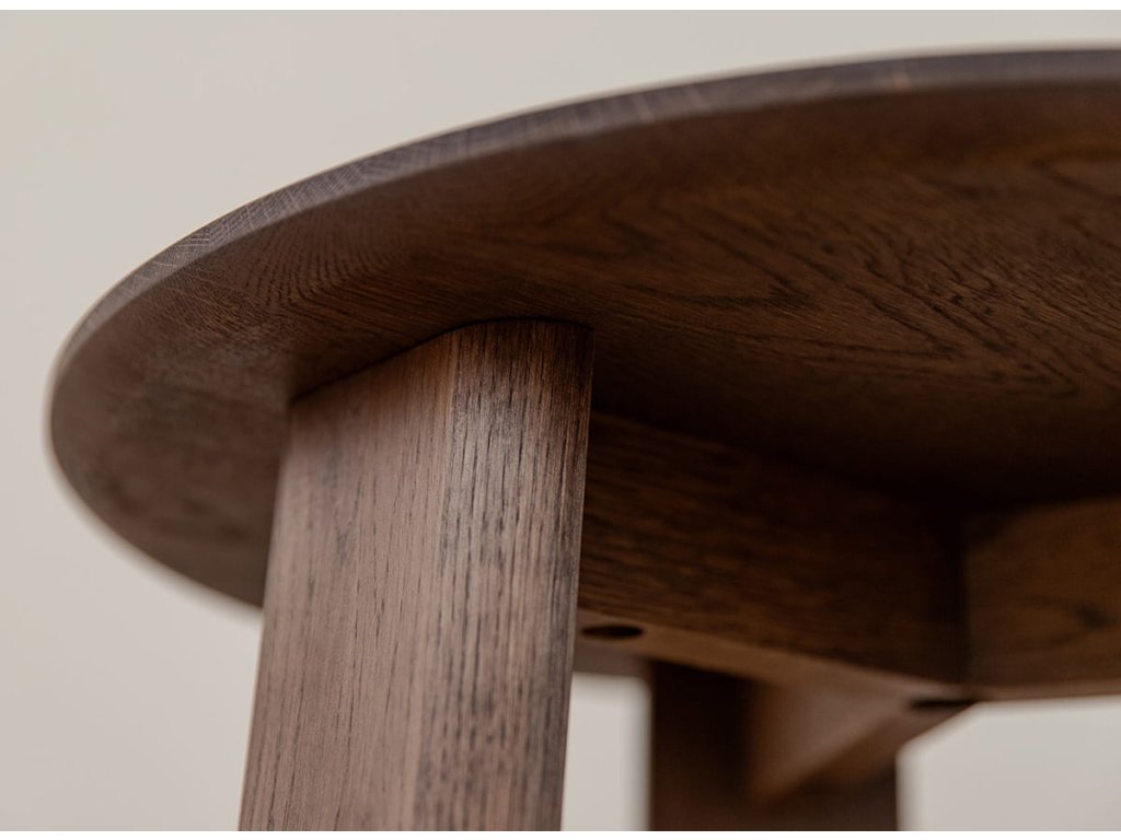 Dřevo použité k výrobě stolku je ošetřeno přírodním olejem, který zvýrazňuje jeho kresbu a zároveň poskytuje ochranu před každodenním opotřebením. Povrch je příjemný na dotek - teplý, hladký, jako by vás zval spočinout. Každý prvek, od stabilních nohou až po pečlivě zaoblené hrany desky, byl navržen s ohledem na dlouhodobé používání a vizuální čistotu.
