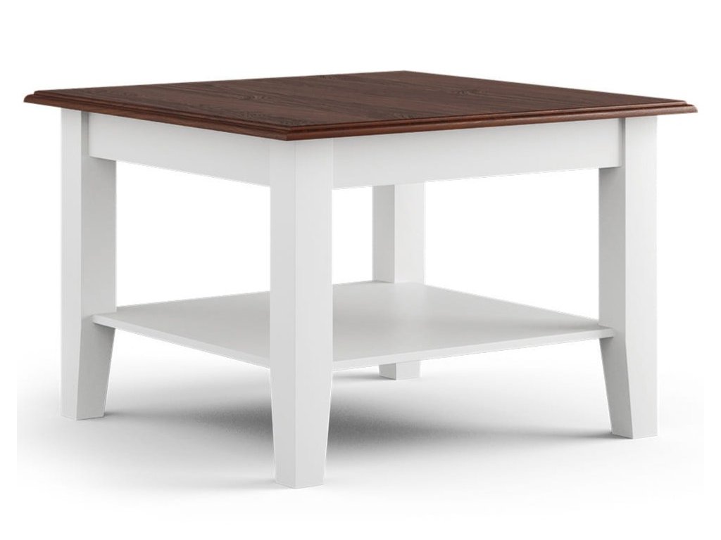 Bílá je univerzální barva, která místnost rozzáří a opticky zvětší. Bílý nábytek vypadá esteticky a přináší do místnosti pořádek. S ohledem na to byl malý borovicový stolek potažen bílou barvou na vodní bázi. Díky tomu, že je jeho konstrukce vyrobena z masivního dřeva, je bílý stolek odolný a na povrchu má estetická zrnka a uzlíky. Vrchní deska je potažena v barvě ořech.