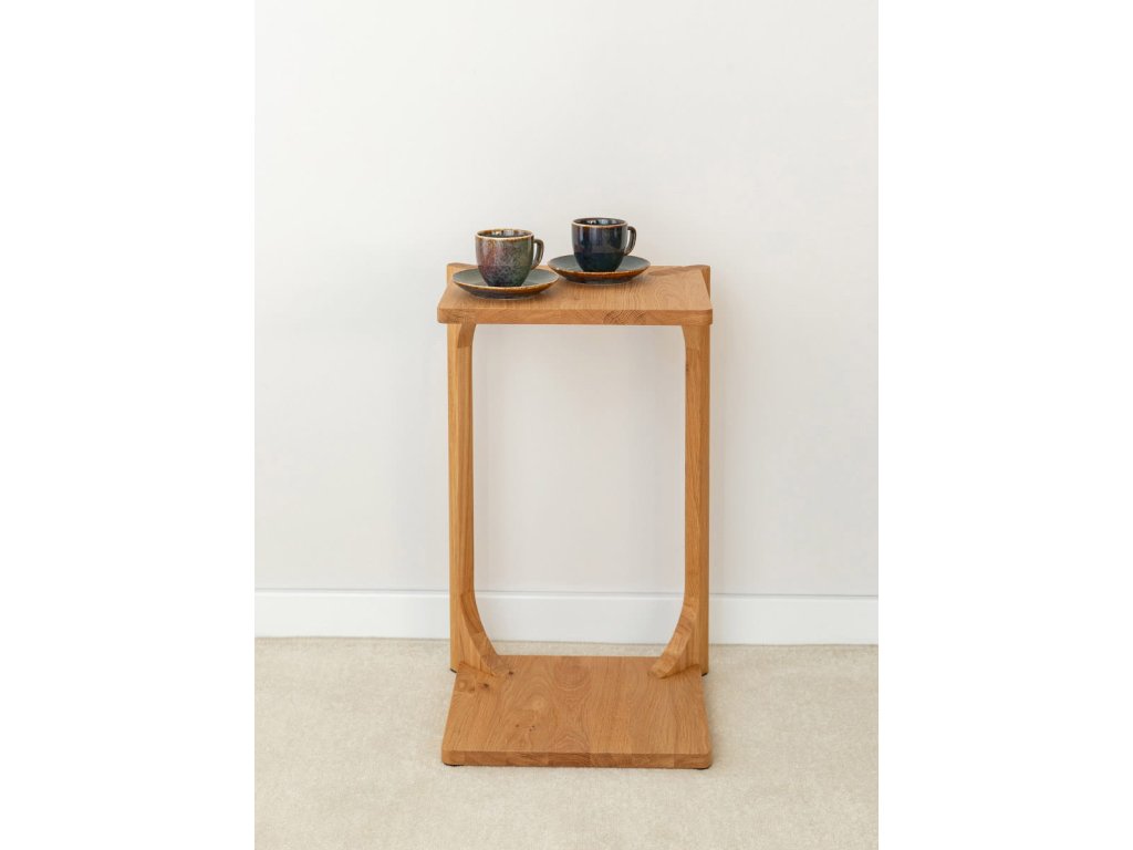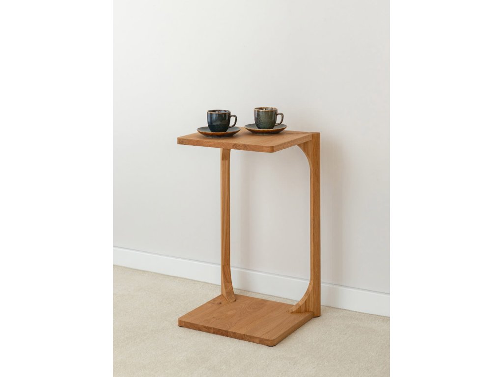 Príručný stolík Campi z masívneho dubu je praktickým pomocníkom pre každodenné využitie. Vďaka svojmu tvaru sa jednoducho zasunie k pohovke alebo posteli. Ponúka odkladaciu plochu aj spodnú policu na drobnosti. Ideálne riešenie pre interiér, kde sa spája funkčnosť a prirodzený dizajn.