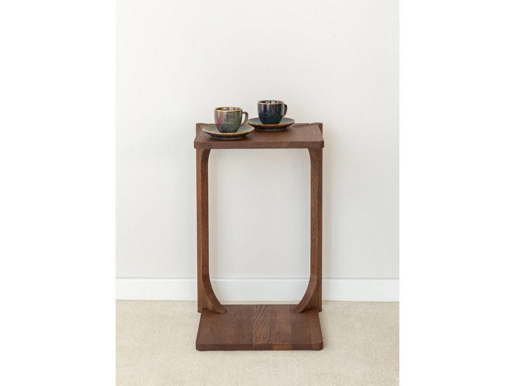 Príručný stolík Campi v prevedení tabakovo hnedá prináša elegantný a praktický doplnok do každého interiéru. Vyrobený z masívneho dubu s olejovanou povrchovou úpravou ponúka odolnosť aj prirodzený vzhľad s výraznejším tónom. Jeho premyslený dizajn umožňuje využitie ako odkladací stolík, nočný stolík či pomocná plocha pri práci. Vďaka kompaktným rozmerom je ideálny aj do menších priestorov. Rozmery: 38 × 60 × 31,5 cm (š × v × h).