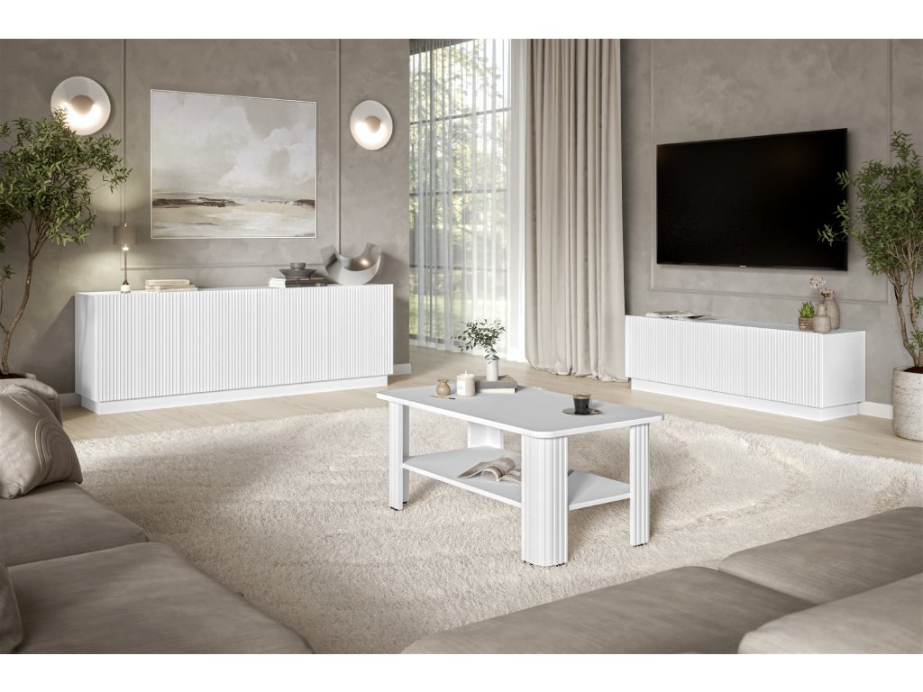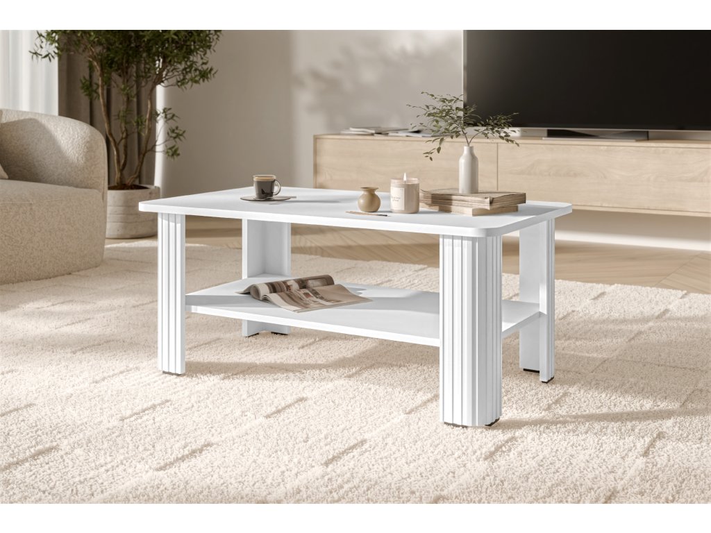 Konferenční stolek Rest v bílém provedení přináší do interiéru čistotu, světlost a moderní šarm. Praktická police a jemné detaily dělají z tohoto stolku funkční i estetický doplněk. S rozměry 96 × 55 × 42 cm nabízí dostatek místa pro dekorace, knihy či drobnosti každodenního života.